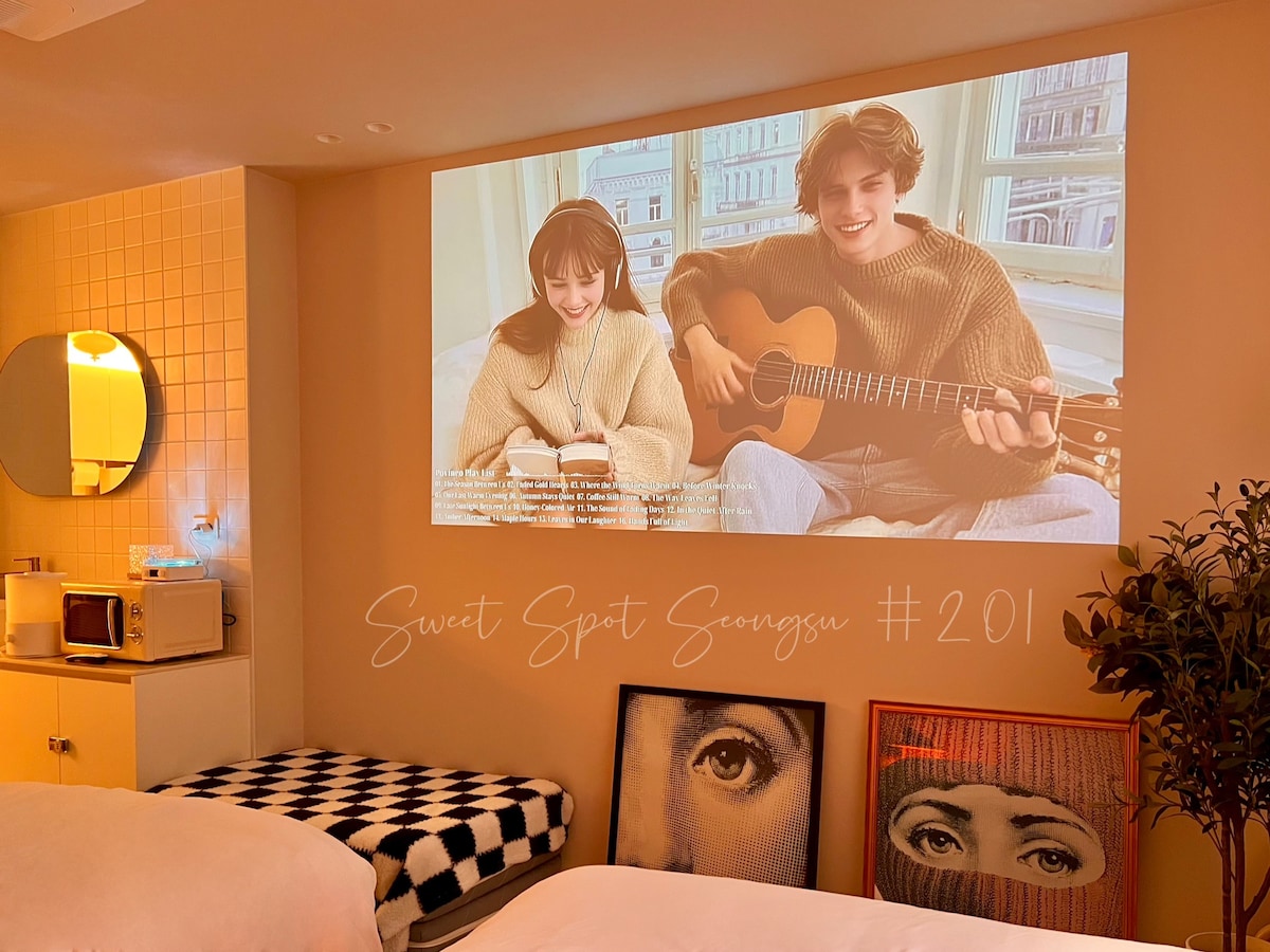 #201. 距离圣水站 7 分钟。时尚住所。咖啡馆街。投影仪。2 张床。新建 [Sweet Spot,圣水]