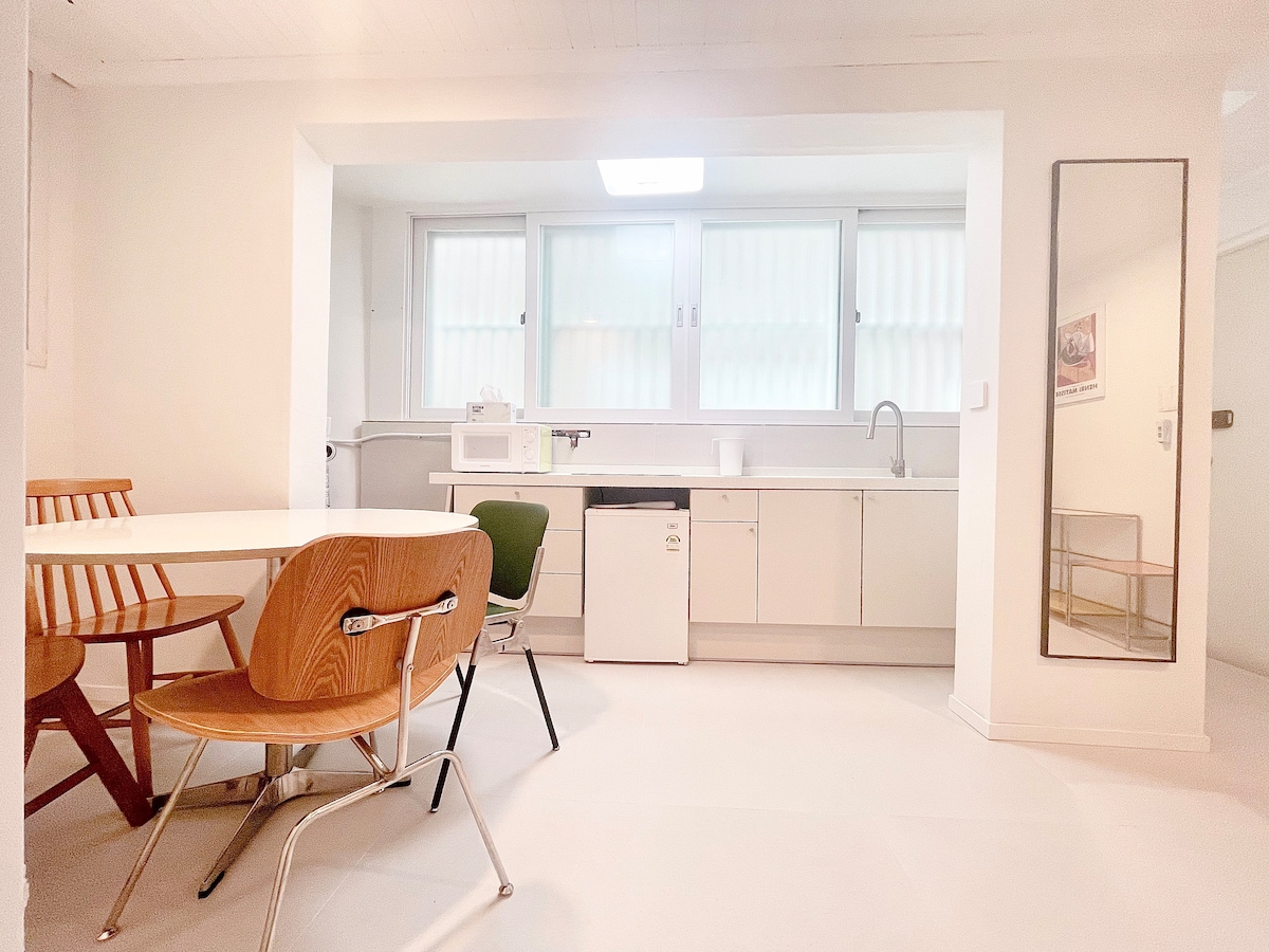 A bright modern studio in the very center of Hongdae. Minimal yet warm with bright yellow accents, the studio is equipped with a full kitchen, fridge, washer(that has dryer function), AC, floor heating(even in the bathroom), a full bathroom, a Queen size bed(1500mm width), a spacious work station/table(1400mm width), and other meticulous amenities you may need. Located on the first floor of a 4 story house building (where my family lives on the top floor) with a separate entrance for you.