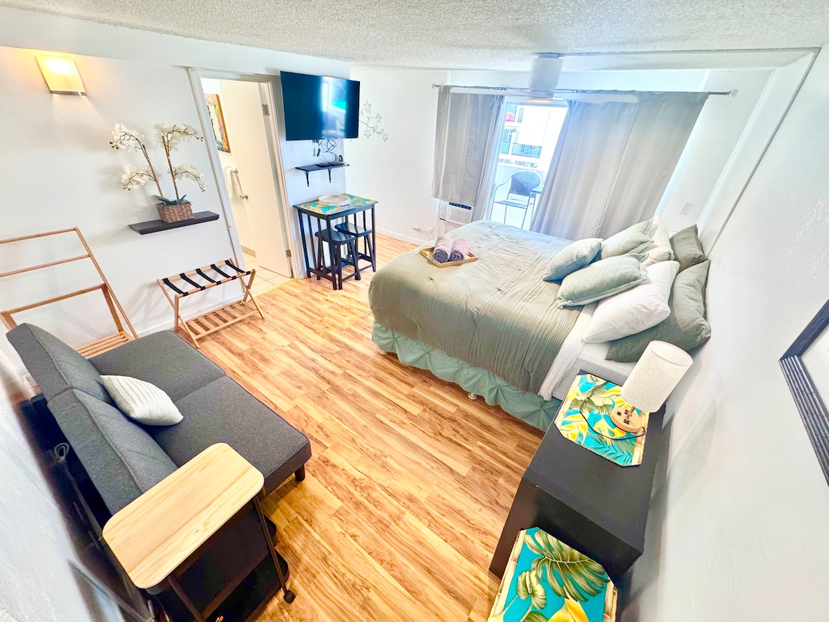 现代干净单间公寓,免费停车|步行至海滩