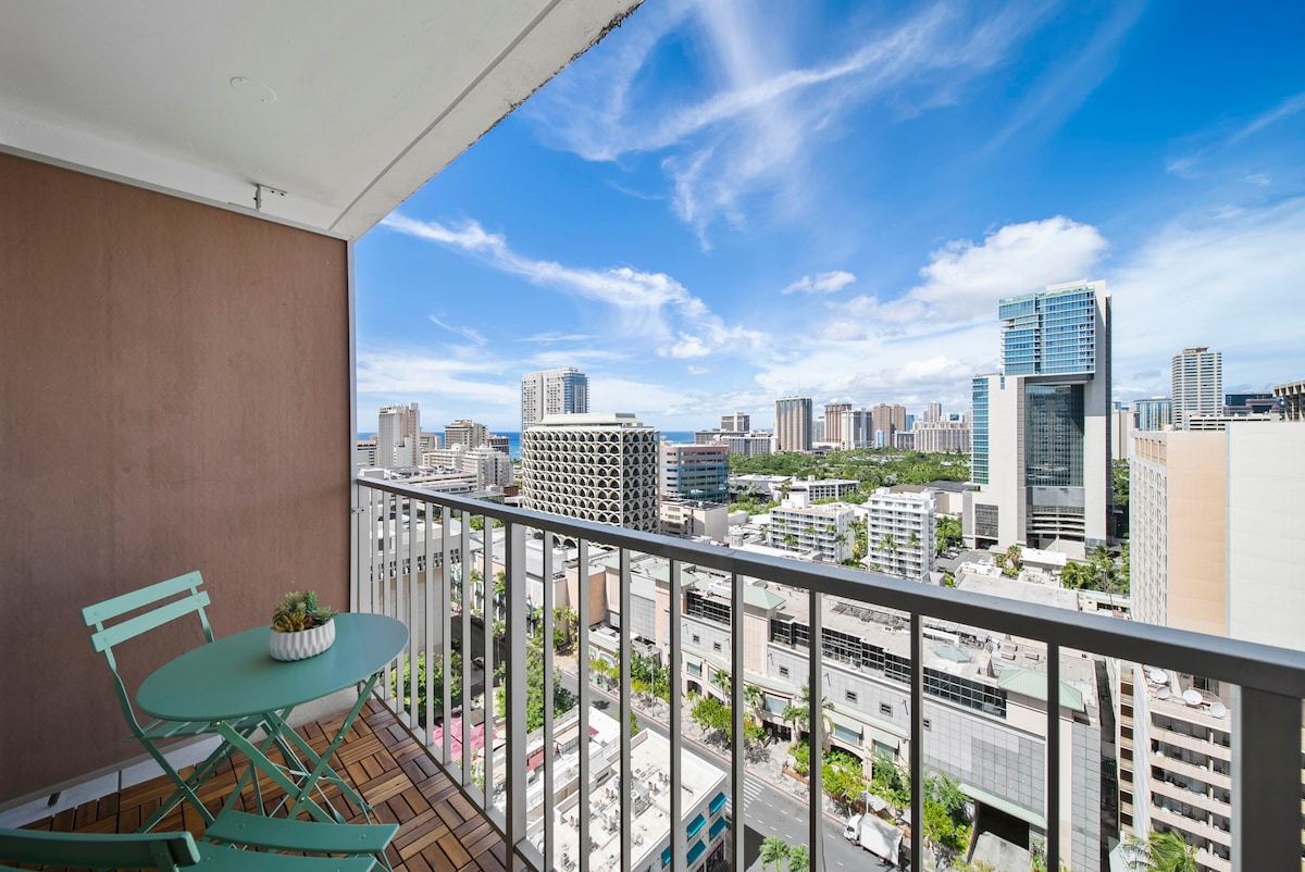 Welcome and Aloha- Recently renovated Gorgeous Mountain View A few minutes of a quick stroll Waikiki Beach,Shops and Restaurants. Find yourself situated on the 14floor, Whether you're traveling with family or a group of friends, you'll appreciate the spaciousness of the balcony, which includes a dining area, perfect for soaking in the stunning views. The building is situated in central Waikiki, with so much to see and do in the area, you'll be able to enjoy all that Waikiki has to offer.