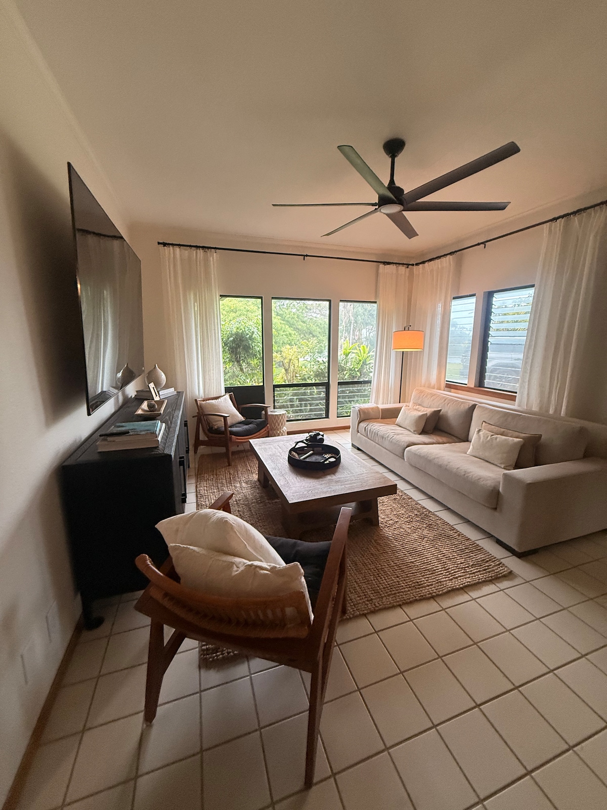 - 10 minutes to the white sandy beach of Makaha Beach - Stunning ocean view and surrounded by tropical mountains backdrop - Bright interior with high ceilings and pleasant natural light - Three bedrooms, with twin options perfect for children or friends - Fully equipped kitchen and in-home laundry - Free EV charging