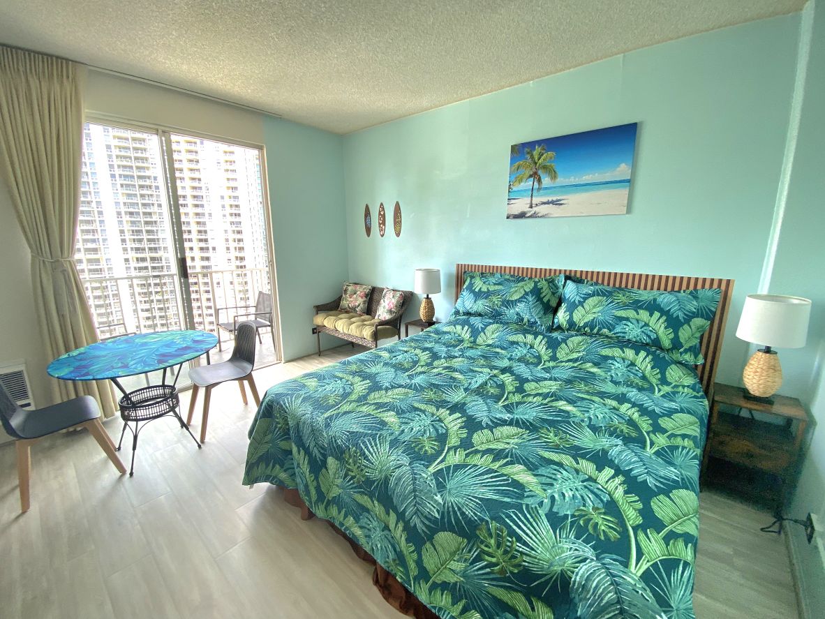This cozy studio is located in central Waikiki in the Island Colony on Seaside Ave. Experience unobstructed, breathtaking views on the 39th floor of Diamond Head and the vast shorelines of Waikiki beach. This apartment is fully furnished with 1 King size bed and 1 sleeper sofa. With this central location, you’ll be surrounded by local favorite restaurants, shopping plazas and minutes away from the world famous Waikiki beach. This apt is perfect for couples, small families and solo travelers!