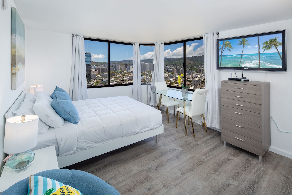 舒适的天空单间公寓B,位于35楼,享有威基基海景!
