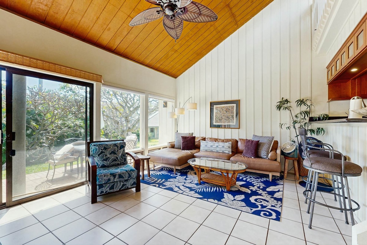 This cozy corner of the Garden Isle is our special place to quiet the mind and reconnect with nature by catching the sunrise outside on the spacious back lanai while listening to the awakening birds. The spacious open layout with large windows ensures plenty of natural light all day. Arrange breakfast in our fully equipped kitchen and head to the beach with the gear provided. Return home to enjoy a BBQ with fresh floral-scented trade winds or unwind with the sunset view from the 2nd-floor lanai.
