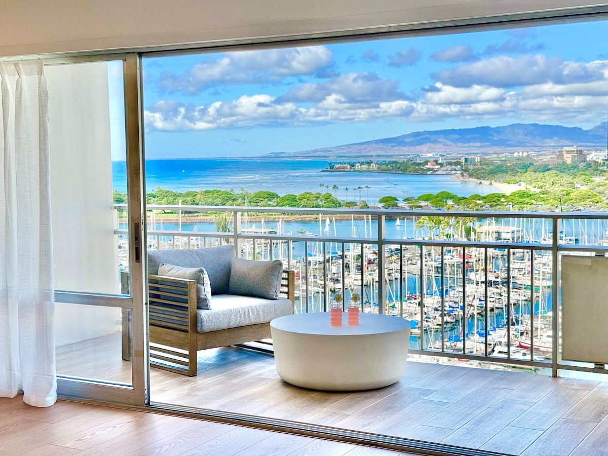 Newly renovated stunning condo unit at the Ilikai hotel is fully equipped with everything you will need for the perfect stay. All new appliances, furniture, flat screen TV's, leather pull out sofa, modern design, bidets, AC, Xbox, Wifi and more. 2 bedrooms, 2 full baths, 1 free parking, 2 balconies, 4 beds, 8 guests. This spacious 1,000 sq ft unit is centrally located making restaurants, shopping and beaches all within walking distance. This is truly the perfect space for an unforgettable trip.