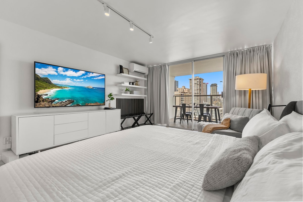 16楼-翻修后的现代特大床单间公寓-威基基海滩~
