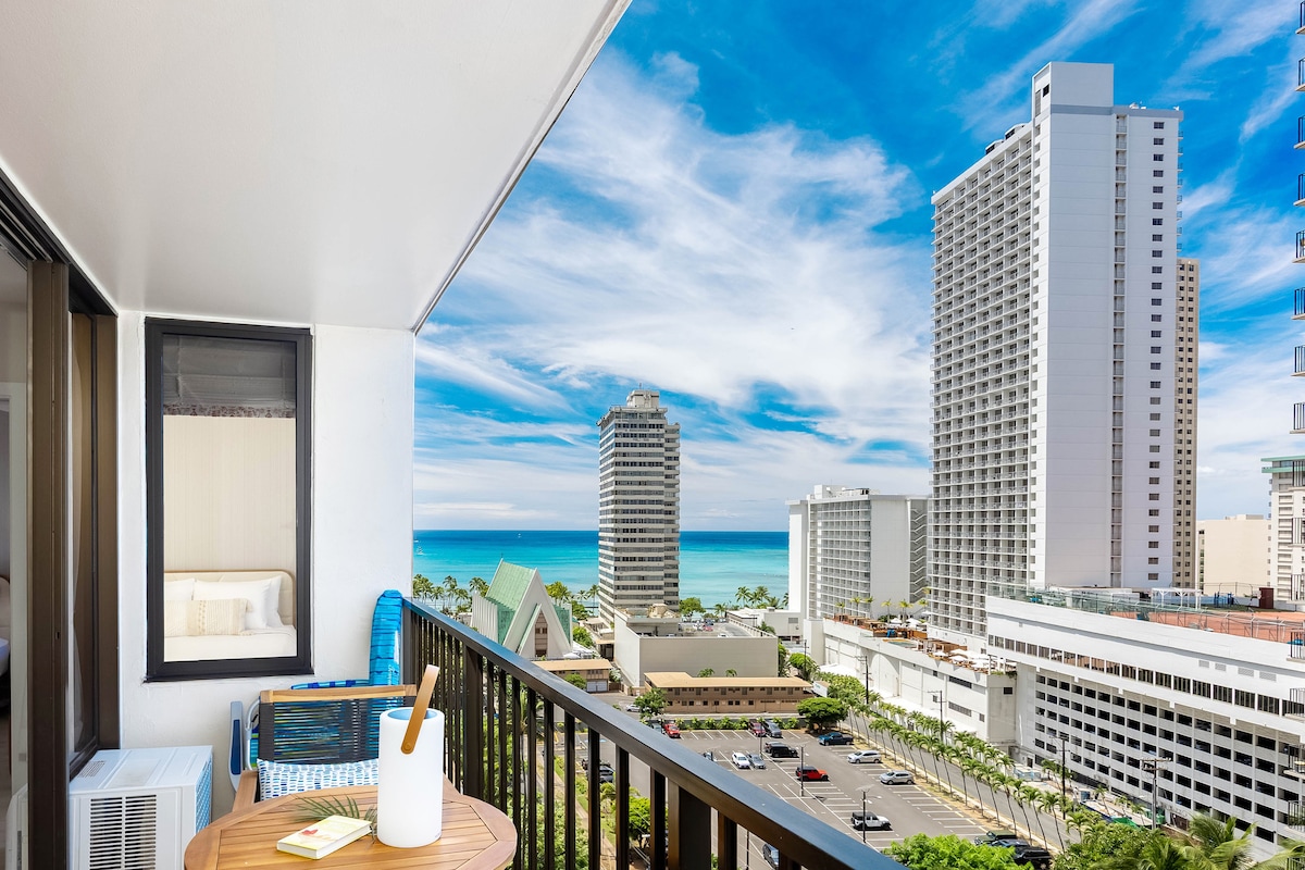 BEST LOCATION & OCEAN VIEWS! Steps to Waikiki Beach & all the action! No car needed Newly renovated condo 1/2 block to the beach on 9th floor of Waikiki Grand Hotel. Across from the Zoo in Kapiʻolani Park. Enjoy 2 private balconieswith Ocean/Diamond Head views. 1 Queen bed & 1 Queen Pull Out. Dividers provided to convert into 1 bedroom if needed. See photos of Full Kitchenette & beach gear included LEGAL VACATION RENTAL All taxes/fees included—your family or solo dream vacation starts here!