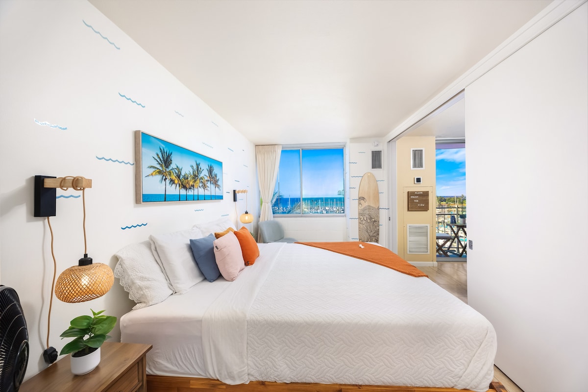 * Aloha! Welcome to our happy place in the heart of Waikiki! * If you are looking for stunning ocean views directly from your bed, this is it! You are within minutes of walking distance to almost everything - beaches, restaurants, bars, surfing lessons, boat tours, grocery stores, shopping malls, and more. Our spacious bedroom, full kitchen, and freshly updated bathroom will make you feel just like home. Welcome to our little paradise!