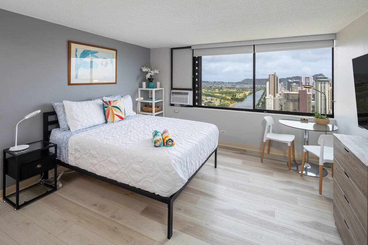 Your dream Waikiki getaway begins here! Enjoy panoramic views from our 26th-floor studio in the Hawaiian Monarch, featuring a king bed and views of the ocean, canal, and Diamond Head. The condo is remodeled with new amenities, including a kitchen, A/C, WiFi, and a flat-screen smart TV. After a day exploring O'ahu, unwind in comfort with ocean, sunset, and sunrise views. Just a short walk to the beach, shopping, restaurants, and more—this is your perfect vacation, and we can’t wait to host you!