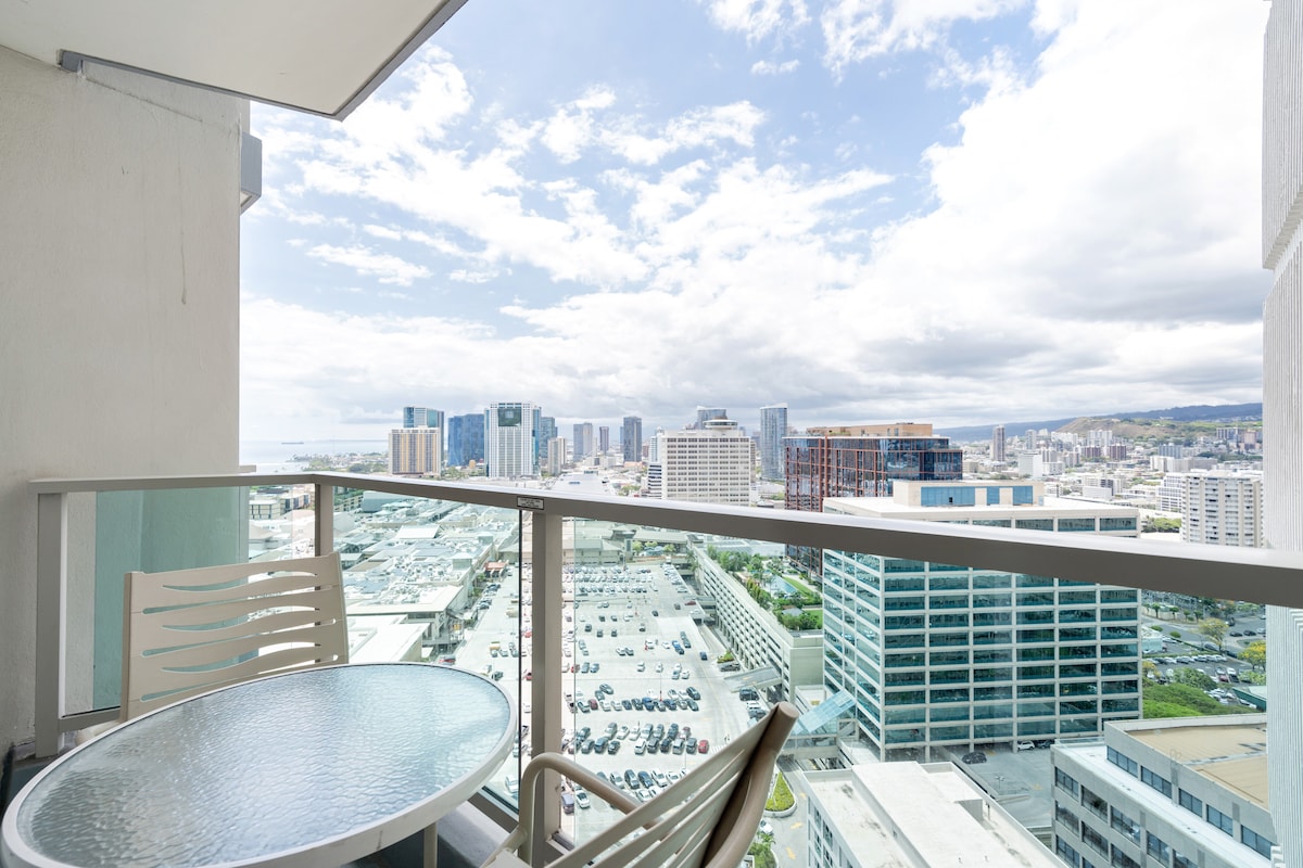 Beautiful & elegant 41st floor studio suite in the heart of Waikiki! Enjoy breathtaking sceneries of the Waikiki skyline and ocean views on the private, spacious balcony. Stunningly renovated with modern decor and fully stocked with everyday essentials. Enjoy a newly installed Split AC system, 65in HD4k TV and a large King size bed with a twin sofa sleeper. This studio is the perfect choice for couples and small families!