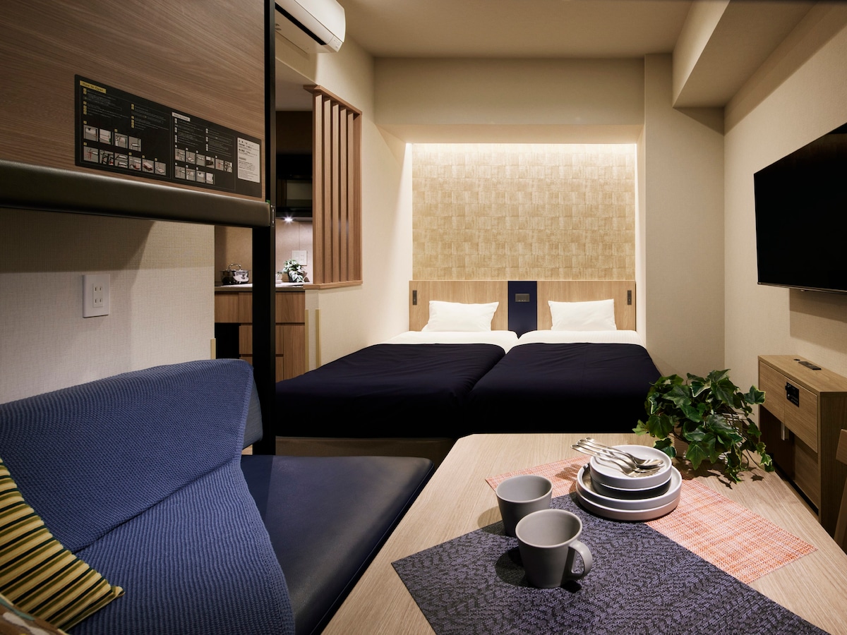 入住這間位處中心地段的房源,全家到哪都方便。 房內配置兩張加大雙人床,適合家人、朋友一同入住 床距舒適,動線保有獨立空間。最多可住5人 開放式廚房備有電磁爐、鍋具與碗盤,想吃家常菜、日式簡單料理都不是問題 吧台連接生活與用餐空間,不論是一杯早晨咖啡,還是一頓晚餐,一切都剛剛好。 洗手台與衛浴獨立設計,幾個人一起住也能保有自己的步調 提供藍芽音響,在日本的夜晚聽著音樂、泡個熱水澡是旅途中最放鬆的片刻。 房內備有投影機,可輕鬆連接常用的數位串流平台 洗衣機、空氣清淨機、熨斗與寬敞衣櫃一應俱全,你需要的,我們都準備好了 空間剛剛好,適合一個人靜靜地在吧台工作,也適合和朋友或家人一起住上幾天 自在相處,各自舒適。
