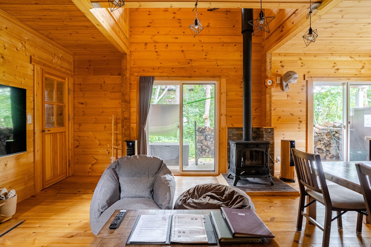 11.12月SALE温泉と静かな庭の広々ログハウス|フルキッチン|最大8名|無料駐車場|車で信州観光