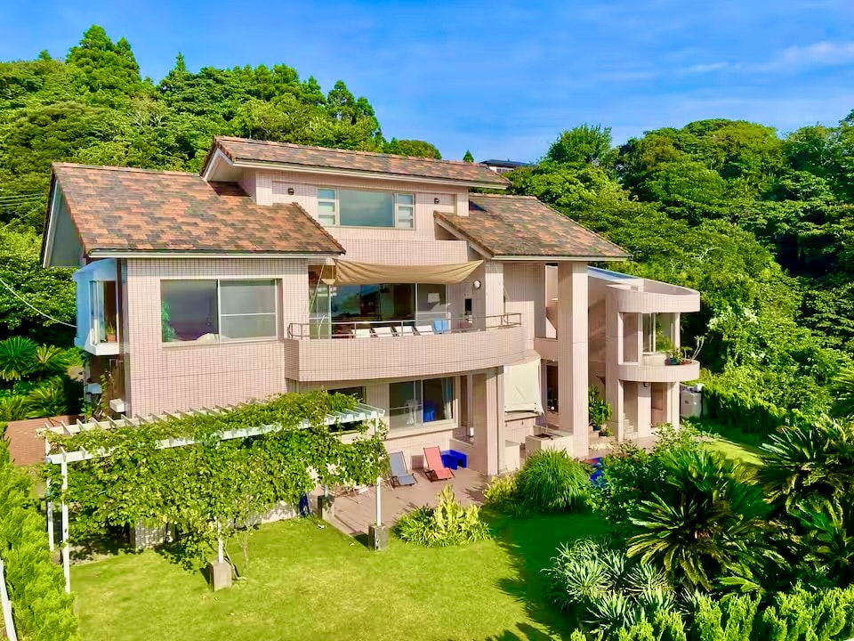 This listing is located in the holiday villa area in Ajiro which is only 10 minutes away from Atami Central. As it is located in higher level, every room has the great ocean view! Enjoy the beautiful view in a comfortable queen bed, living room or balcony. Also this accommodation has a stone-made traditional styled bathroom where you can enjoy the natural hot springs :-) Please get relaxed in this new accommodation built in Apr 2021 and enjoy your trip in Atami!