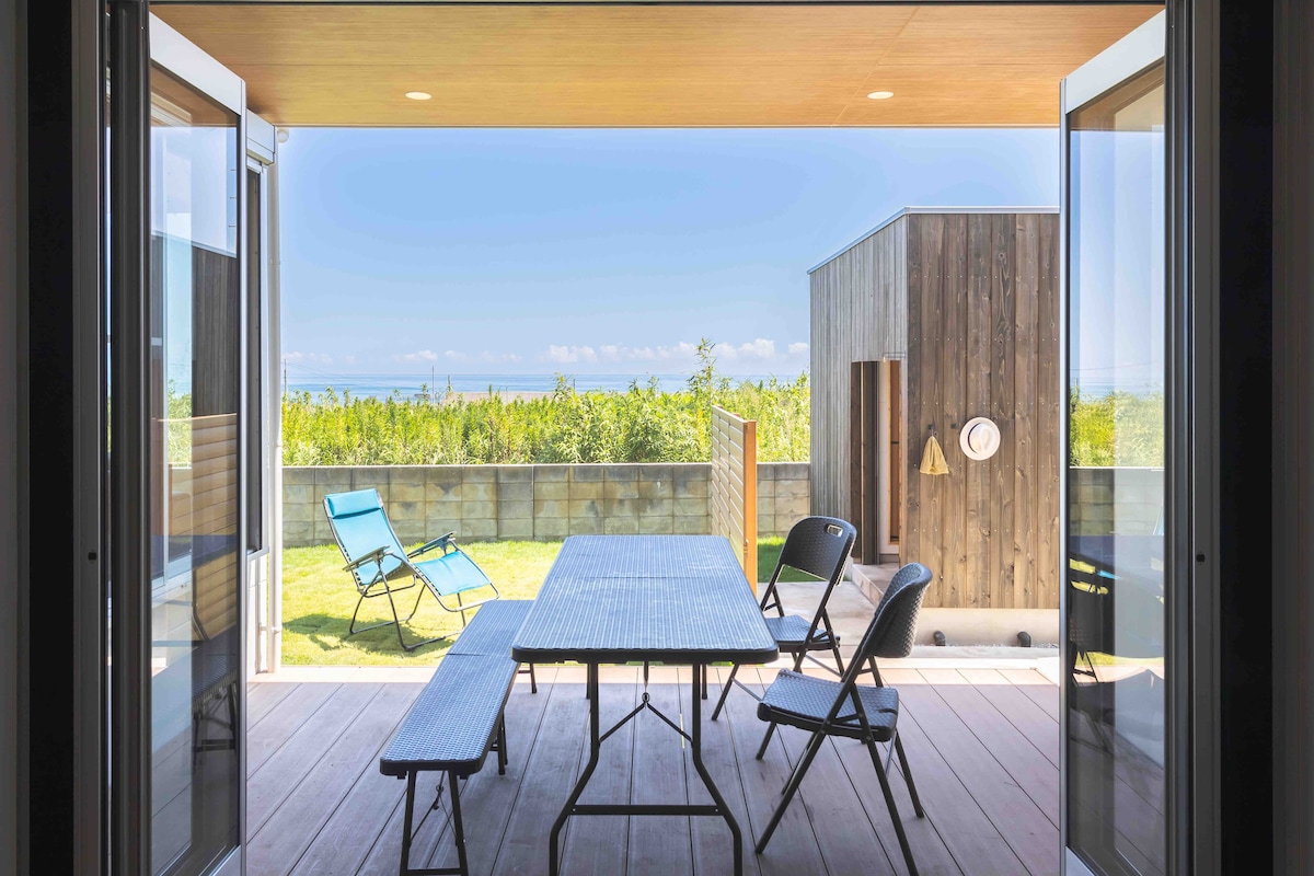 【ご予約前にリスティングの確認をお願いします】 2023年8月オープン、1日1組限定のデザイナーズ貸別荘です。 BEST OF MINPAKU 2025 サウナ付貸別荘部門で全国第5位を受賞! 波の音に耳を澄ませながら、プライベート空間でリラックスできる【The Wave】。 自然やサウナ、BBQ、焚き火などをお楽しみいただけます。 チェックイン15時/チェックアウト11時。 ※サウナは土足禁止。専用アロマは必ず希釈してください。 ※ウッドデッキは火気厳禁。火消し壺もデッキに置かないでください。 ※シャッターは必ずリモコンで操作(手動禁止)。 ※チェックイン・アウトは時間厳守。11時から清掃が入ります。 ※Private roomはご利用いただけません。 ※建物や庭は外から見える場合があり、完全なプライベート空間ではありません。 ※ご予約前に「その他の留意事項」を必ずご確認ください。