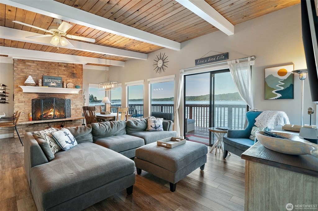Featured in Cascade PBS Hidden Gems, our completely renovated 1930's beach front cottage is located in the island's south end, sunny Crystal Springs neighborhood. Featuring a chef's kitchen, vaulted great room, wood burning fireplace and stunning Puget Sound view where you can take in sunsets from the covered lanai, deck or relax on 100 feet of private no bank waterfront. One of the few homes with a private, fenced yard and beach. Enjoy nearby trails & Pleasant Beach Village just minutes away.