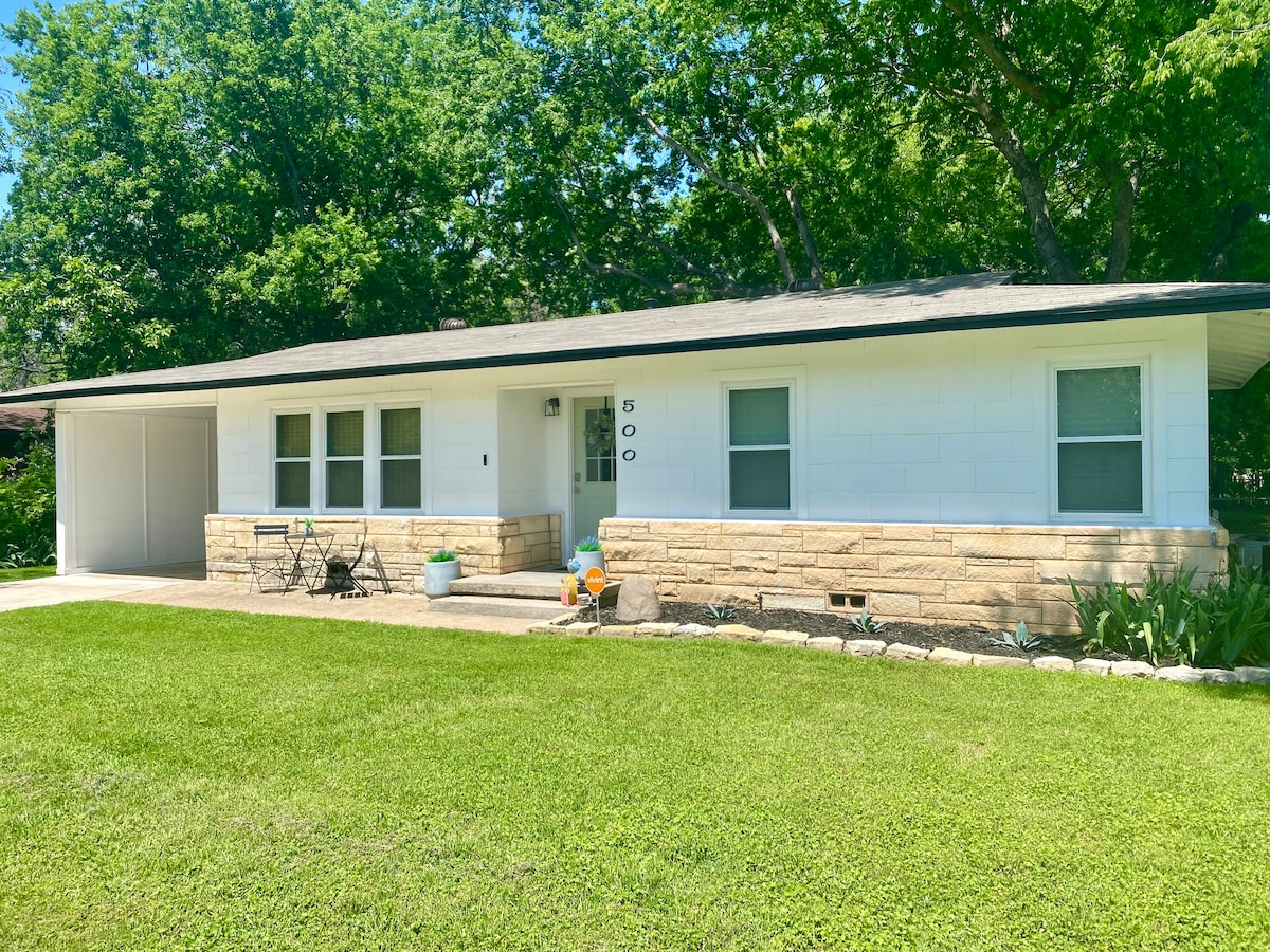 Charming Granbury Getaway: Mid-Century Modern Oasis near the Square Unwind and explore the heart of Granbury in this delightful mid-century modern home! This professionally designed 1955 house boasts 800 square feet of comfortable living space, perfect for a couples retreat or a small family vacation. Ideally situated within walking distance of the Granbury Historic Square, you'll have easy access to charming shops, delicious restaurants, and historical sites.