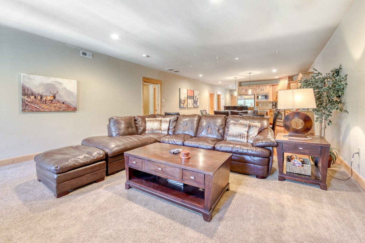 Getaway with the entire family in this 1875sf condo! Even Fido can come with you to this cozy Grand Lodge North home. With a fully equipped kitchen family can sit around the breakfast bar and enjoy the company of the family chef as they cook. The dining area offers a large table with seating for everyone. Relax in the large living room area and watch a movie, or just hang with family and friends.
