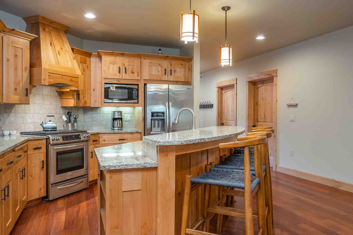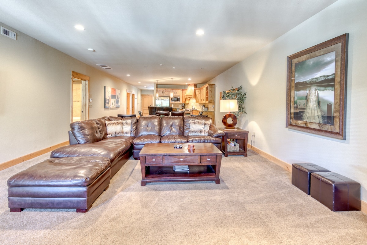 Getaway with the entire family in this 1875sf condo! Even Fido can come with you to this cozy Grand Lodge North home. With a fully equipped kitchen family can sit around the breakfast bar and enjoy the company of the family chef as they cook. The dining area offers a large table with seating for everyone. Relax in the large living room area and watch a movie, or just hang with family and friends.
