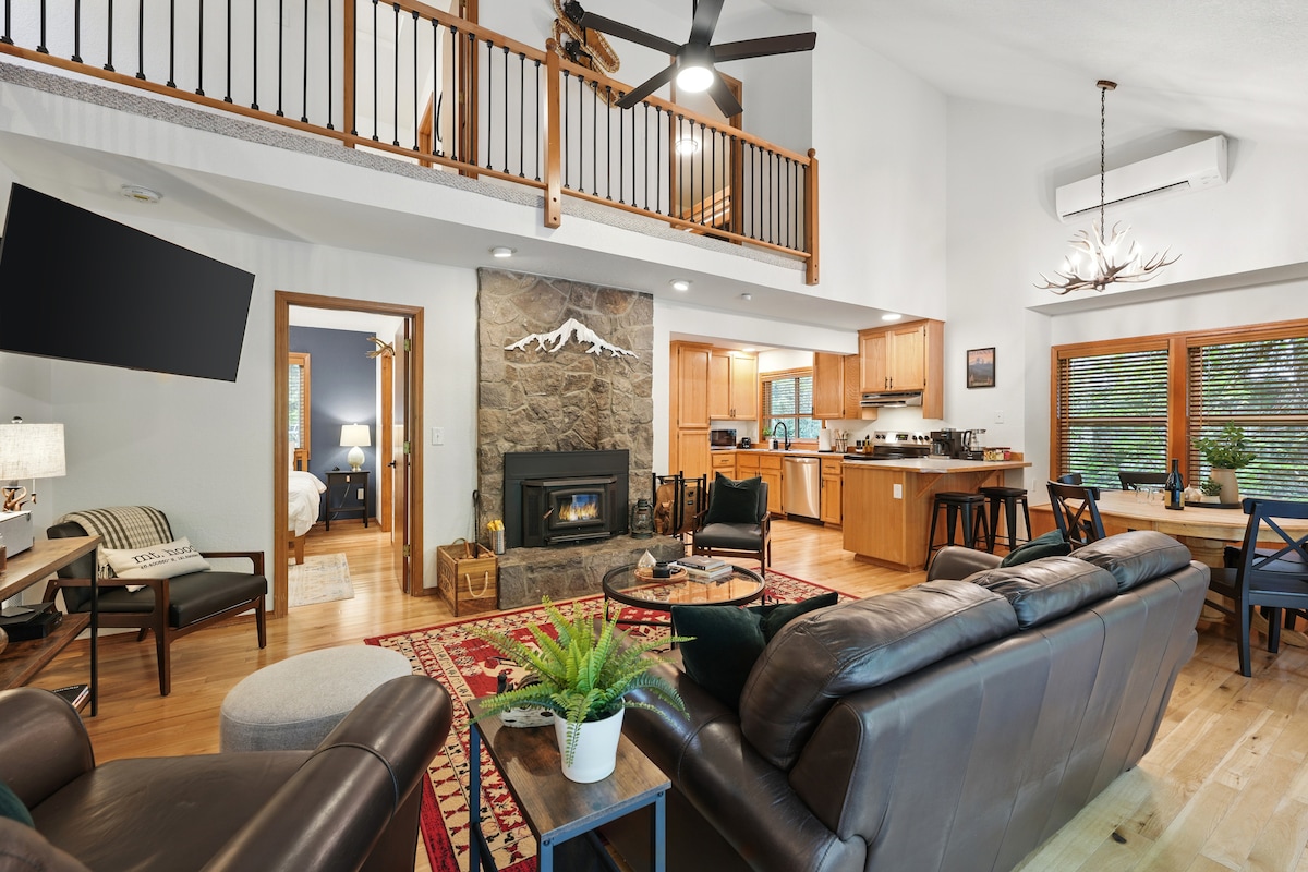 Custom single-level 2200 sqft Mt Hood National Forest home located in Welches, OR * Central air & heating w/ gas fireplace * Spacious room layout * Wall of windows showcasing lawn and forest. * 70-inch 4K HDTV w/ SONOS surround sound * 500Mb eero mesh wifi network. * Gourmet kitchen with SS appliances, modern cookware, coffee maker, and all amenities. * Spa-like rain showers with Jacuzzi tub in master. * Laundry room. * Cal King in MB, Queen in B2, and Twin/Full bunk in B3.