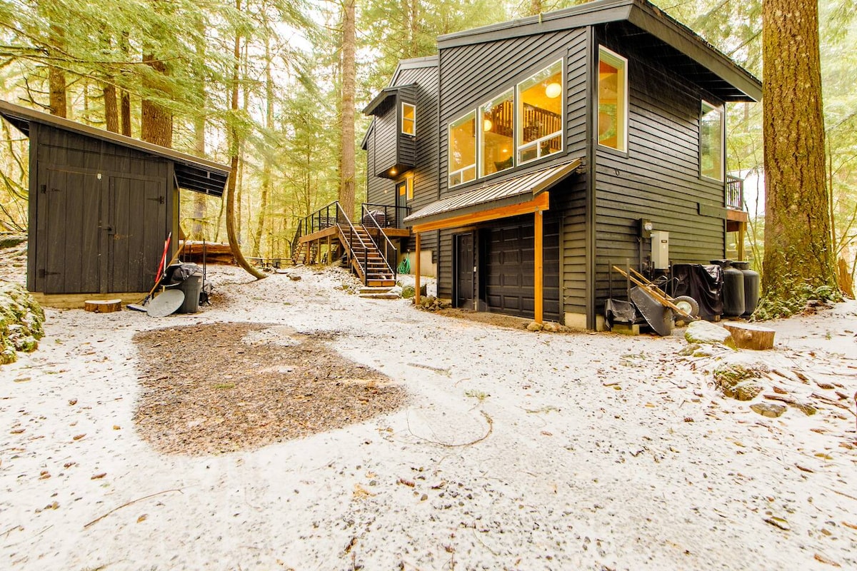 A small, cozy cabin perched above the White Salmon River, just minutes from town. Enjoy the expansive 180 degree views from your private little forest oasis or take advantage of the central location to explore all The Gorge has to offer. We've recently renovated this private retreat to keep our visiting friends and family comfortable. We're excited to share this secluded little gem with you all, and look forward to making sure you have a wonderful stay! Heather & Eli