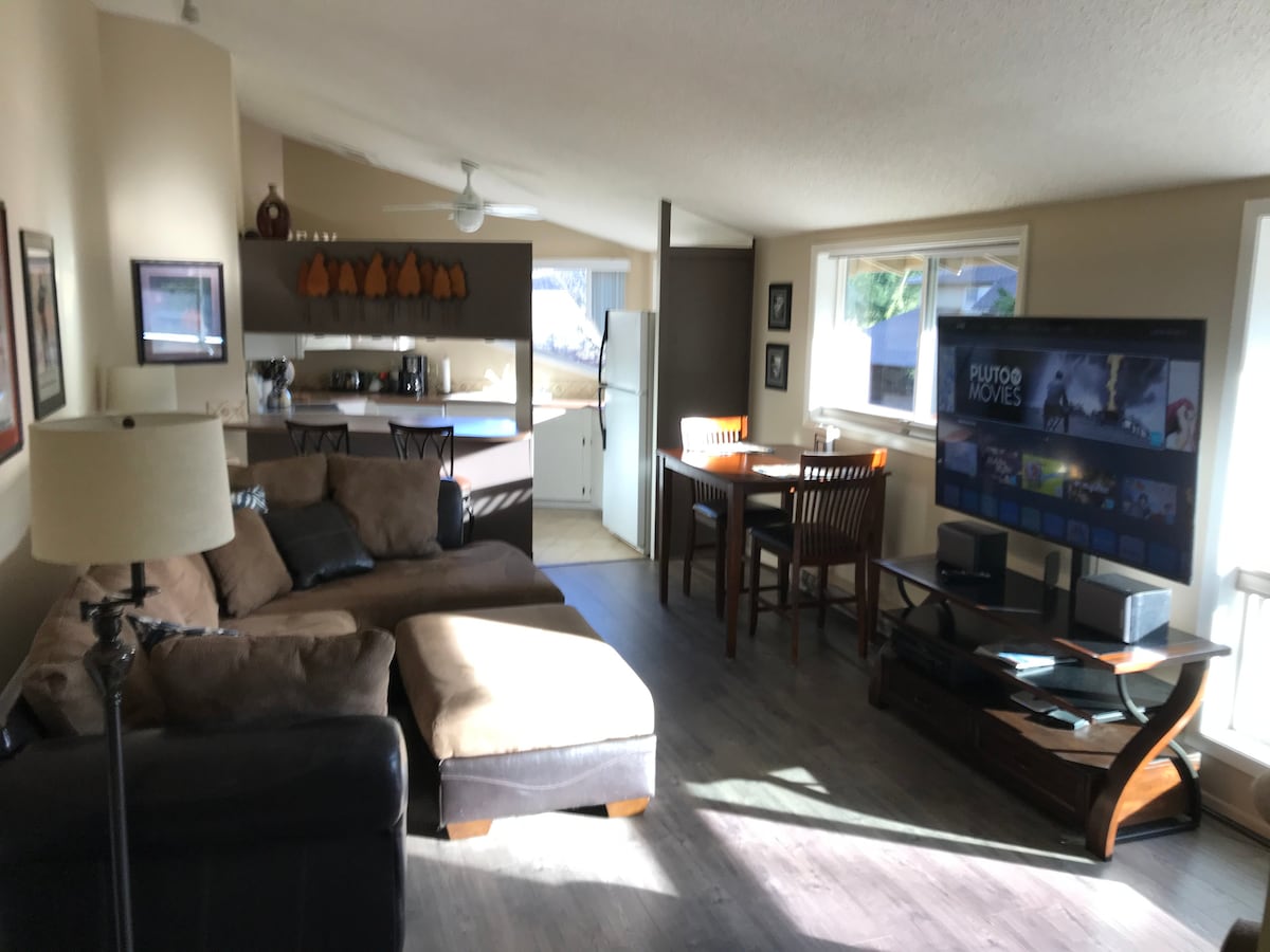 Largest National Scenic Area in the USA - Columbia River Gorge! Two blocks from Everybody's Brewing, White Salmon Baking, Soca, Henni's, Pixan, Feast and 3 Wine Tasting Rooms, you can eat drink, and be merry! The 2-room cozy studio has a private entrance, full kitchen, private deck, hardwood floors, Smart TV & style! For wine lovers, free tasting passes for several of our fav wineries. If you prefer to stay in and cook, we have you covered. Endless trails, waterfalls, waves & paddles.