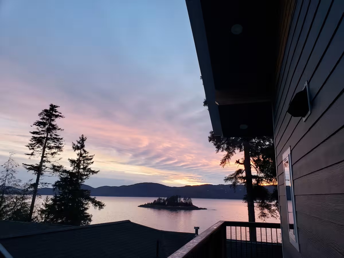 Right on the water! Offstreet parking with 50 steps down to the front door. Sit on the deck above the water and watch spectacular sunsets over the Chilkat Mtn Range. The space will accommodate two couples or a family of six. Wonderful covered deck with grill and outdoor dining. Totally possible to see humpback whales, orca, seals, sea lions, waterfowl, river otters, harbor porpoises, kingfishers, eagles and bear while sitting on the deck or looking out the window. Family friendly & work space.