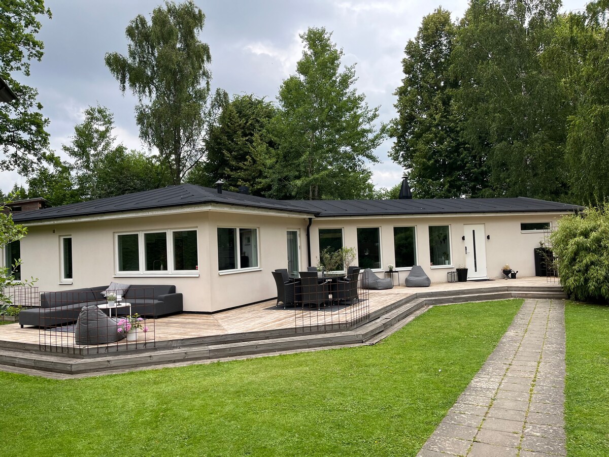 Uppe på kullen hittar ni vår oas. Genom skogen har ni direkt access till vandringsslingor, eldplats och BMX banor. Gå ner till sjön och hyr kanot, båt eller spela minigolf. Eller bara gör som vi - sätt er i en stol på terrassen och fånga nuet. Bra kommunikationer till både buss, tåg och vägar. Höör med alla bekvämligheter ligger bara några minuter bort. Notera att altanen inte är dimensionerad för små barn i dagsläget då det finns risk för fall.