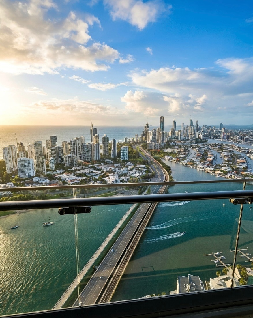 Great views & a central location!! Relax on the large balcony while taking in the amazing Broadwater & Ocean views; so easy to watch the world go by. This is a smart, spacious apartment that a family can stretch out in after enjoying the many activities close by - enjoy a walk, bike ride in the Broadwater parklands. Or, catch a tram from the stop downstairs & get to close by beaches, cafes & shops. Super Convenient!!!