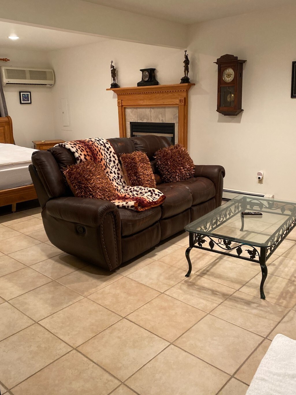 Welcome to Marlboro! This private space in our home features a private entrance, private bathroom with a nice standing shower, eating area (not a kitchen) with tea kettle and coffee machine, toaster, microwave and refrigerator with freezer. There is a table and chairs, love seat couch that transforms into a small cot, queen bed, walk in closet and 55 inch smart TV with a full motion TV stand. We are permitted to operate in the town of Marlboro and a yearly fire inspection is conducted.