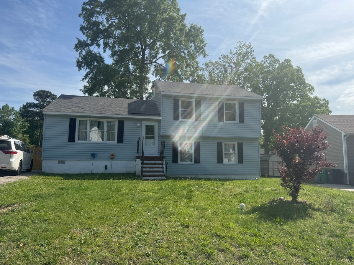 Relax with the whole family at this peaceful place to stay. A home you surely call home . Newly renovated, professionally decorated to give you the feeling of calmness and enjoyment. Located in the heart of the Tri-cities, near Fort Lee, Southpark Shopping Center, Hopewell marina, the Crossing Shopping Center, convenient store, fast food, gas stations movie theater are minutes away. The house has spacious front, back and left side views with no adjacent neighbors on these three sides.