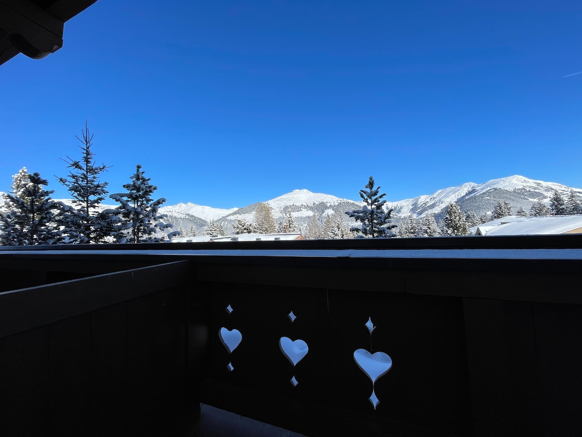 Schnuckelige Dachgeschosswohnung mit mega schönen Ausblicken in alle Richtungen. 1 SZ mit Doppelbett, 1 SZ mit 3-er Stockbett, ein Gäste WC, ein Bad mit XL Dusche, Waschbecken und WC und natürlich der große, schöne gemütliche Wohnraum mit Essecke und bestens ausgestatteter Küche. Eine gemütliche Sitzgelegenheit und eine Liege warten auf dem Balkon auf Euch! Fernseher und WLAN. 2 große Tiefgaragenstellplätze, Abstellraum für Ski & Boards & Schuh.