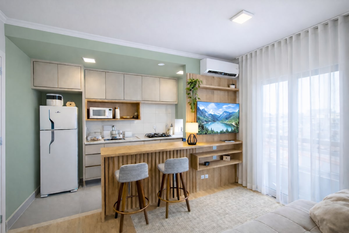 O Setin Midtown campinas está lhe esperando. Nosso apartamento estilo estúdio tem 45m2 com conceito totalmente aberto, completo em utensílios, com ar condicionado, todas as comodidades que você gostaria de ter em sua hospedagem combinados com uma decoração moderna. Contamos com garagem privativa, portaria 24h e "mercadinho". Estamos a 17 min do aeroporto viracopos, 5min do Royal Palm Eventos.