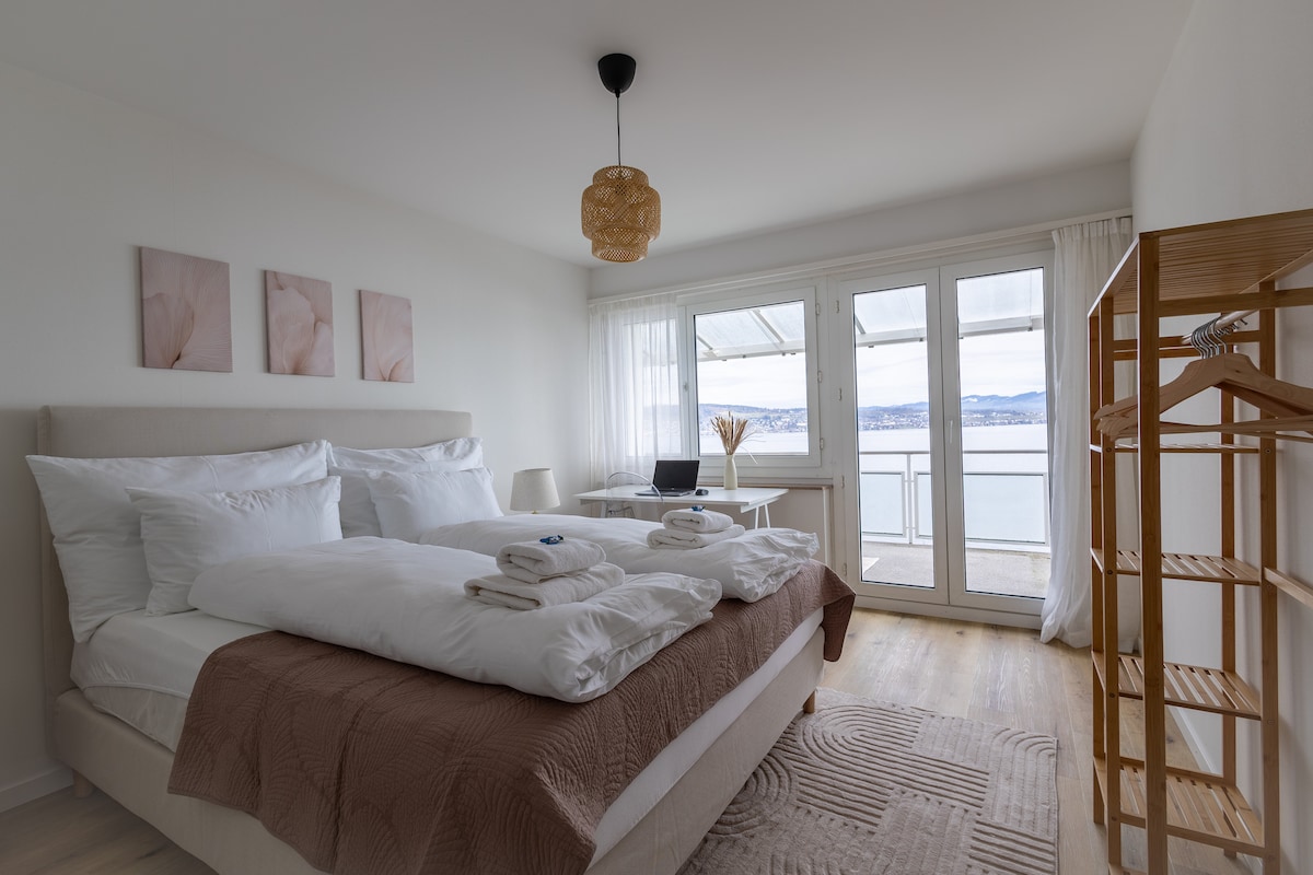 💛Welcome to “Horizon 62”! Look forward to our modern 4.5‑room apartment with breathtaking panoramic views of Lake Zurich and the surrounding Swiss mountains in a peaceful location.✨ ✔️ Newly furnished (February 2026) in a modern, minimalist style ✔️Fully equipped, top-modern kitchen with NESPRESSO ✔️ Maximum sleeping comfort with box‑spring beds & premium-quality sofa bed ✔️ High-speed Wi-Fi & Smart TV with NETFLIX ✔️ Large balcony ✔️ Free Parking ✔️ Fast access to Zurich City & the airport
