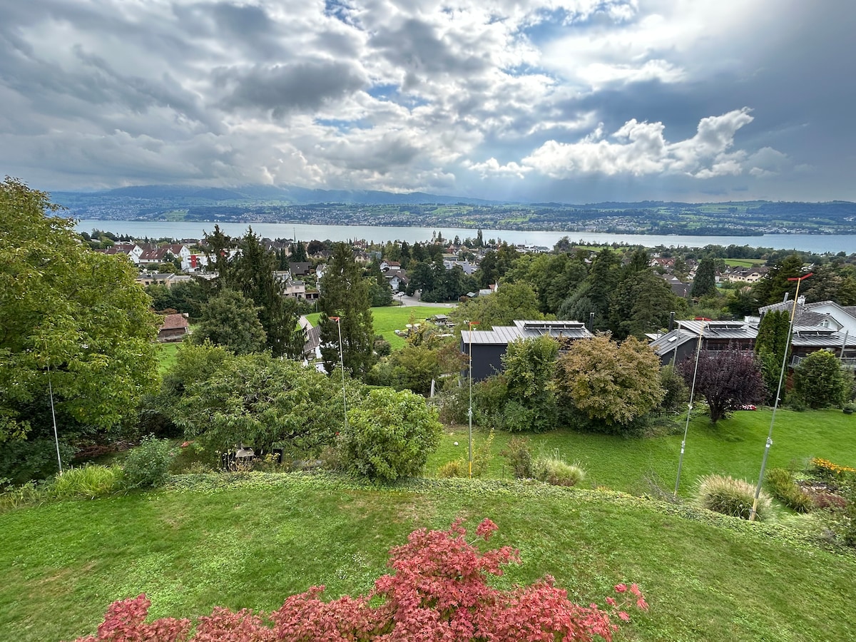 In this cosy accommodation you will spend a great time. Lake view and all around view of the countryside. The connection to public transport is very good, so that especially the cities of Zurich, Zug and Lucerne can be reached quickly. The apartment is located in a beautiful neighbourhood and the lake is just a stone's throw away. There are the Badi, a beach volleyball court and training facilities. The apartment is furnished with high quality materials.