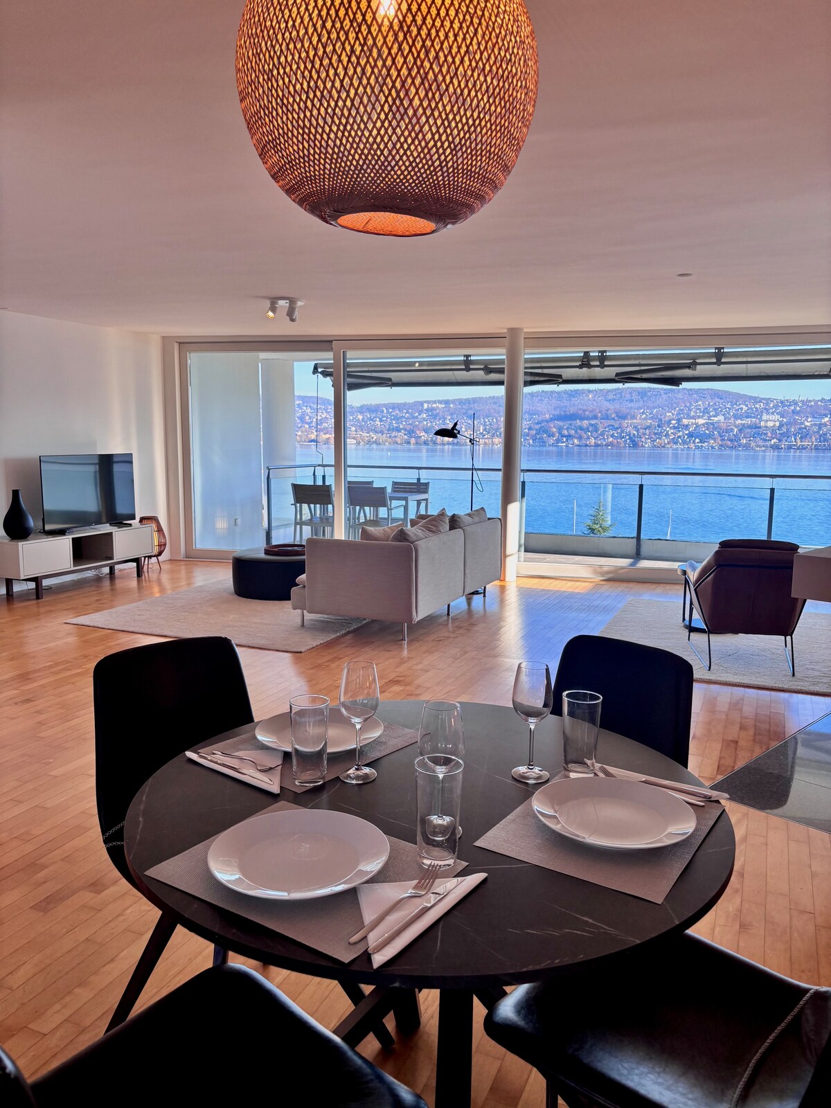 Willkommen in unserer stilvoll eingerichteten Wohnung mit herrlichem Blick auf den Zürichsee. Die Unterkunft bietet die perfekte Kombination aus Komfort, modernem Design und zentraler Lage. Zwei gemütliche Schlafzimmer mit bequemen Betten, laden Sie ein auf erholsame Nächte. Das Zürcher Stadtzentrum erreichen Sie in nur 8–10 Minuten, egal ob mit dem Auto oder den öffentlichen Verkehrsmitteln – ideal für Gäste, die Ruhe und Nähe zur Stadt verbinden möchten.