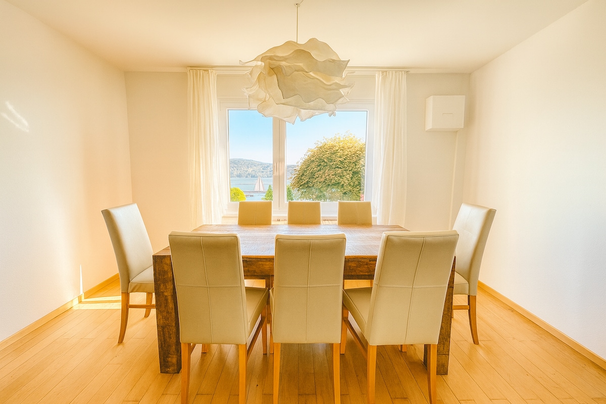 Welcome to Urdin House! This 150 m2 high-end loft looks out over Zürisee from every window. It has the tallest ceilings creating an open and light-filled space. It is the perfect place to call home while in the Zürich area whether for holidays or work. The apartment is perfectly located between the mountains, lake and the city. Direct train from Zurich HB (15 min) and airport (35 min). Swiss Alps are easily reachable in < 1 hour. Skiing, hiking, biking, climbing, via ferrata, swimming, etc.!