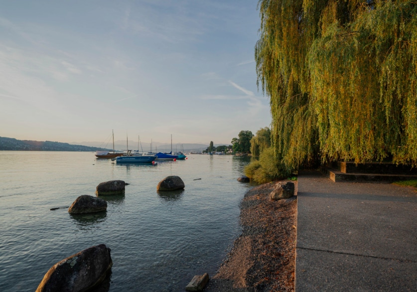 Close to the station / lake o Zurich 3 min. walk; 9 min. to ZH city, 25 min to ZH airport. Close to Lucerne, Zug and Pfäffikon. Perfect for a holiday, a longer stay in the region of Zurich or as first domicile in Switzerland (we offer our support here). 2,5 room flat, on suite bath, sep. toilet, fully equipped kitchen, living area, high quality furniture (B&B, USM), TV, WLAN, Stereo and printer. Attractive monthly rates for 3 and more months, ask for a quote!