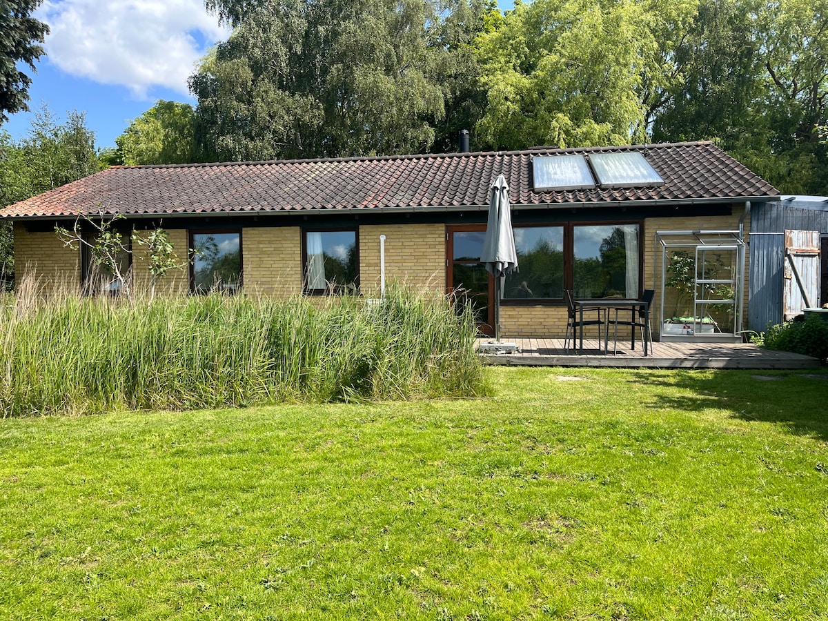 Summer house by Danish architect Søren Cock-Clausen. Gently restored. Furnished with the best of Danish design from the period. The garden is huge, private and with a great view of the fields. Sun at all times of the day. Swings and a sandbox for the kids. Two annexes; an charming wooden house with outdoor bath, small kitchen and dining area, and a small cabin. Our house is perfect for families who appreciate design, nature and privacy. The place has room for 10, but is also great for 4.