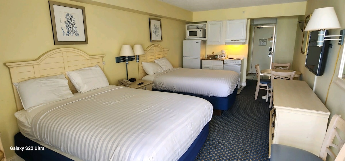 This unit is located Oceanfront in the Tides building on the 5th floor. It has a queen size bed and a sofa sleeper. Kitchenette comes with a Refrigerator and Microwave. Enjoy watching the awesome sunrises and sunsets while sitting out on your own private balcony. This unit is great for a week long vacation or a quick getaway.