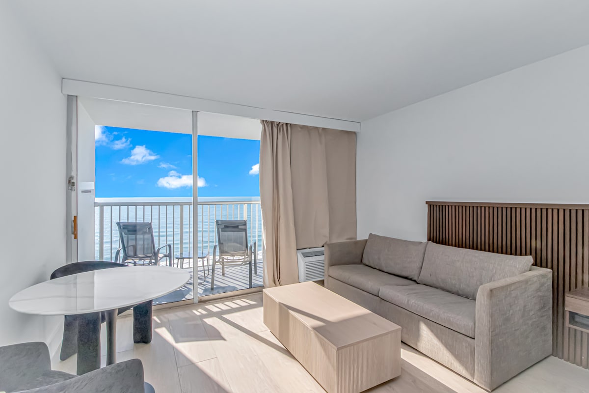Oceanfront Getaway – Relax & Unwind! 🌊 Kick back with your morning coffee (or a mimosa—no judgment here) and soak in the sunrise from this stunning 11th-floor oceanfront studio. This beachy, vibe-filled retreat has everything you need for a chill escape—two cozy queen beds, a stylishly tiled bathroom, and a private oceanfront balcony with views that stretch as far as the eye can see. Head out to enjoy the pools and nightly live music at Ocean Annie’s—one of the best beach bars around!