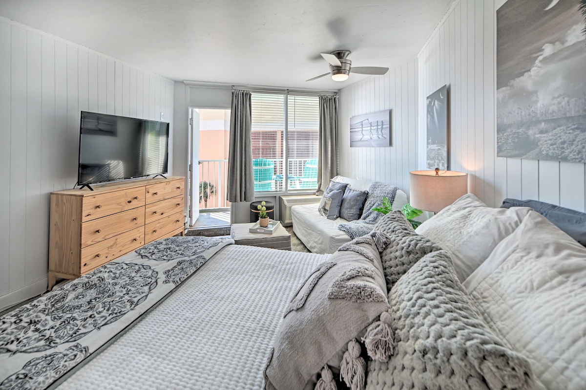 Cruise into the ultimate South Carolina getaway at this Surfside Beach vacation rental! This 1st-floor studio features all of the comforts of home, including updated decor and furnishings, a private balcony, and a full kitchen. The prime location, just a block from the beach, lets you make the most of your vacation time. Additionally, Surfside Pier, seafood restaurants, and oceanfront bars are all just a short walk away. Take a 20-minute drive to reach the Myrtle Beach Boardwalk and Promenade!