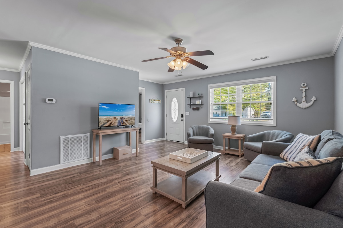 Beautiful newly updated two bedroom home, close to everything in North Myrtle Beach and 25 min to Myrtle Beach Airport. Nestled in a small neighborhood, quiet, friendly and safe. Beautiful winery close by. Shopping and beach just 8 minutes and close to convivence shopping. Back yard large dog Friendly. Great for Adult couple or a family of four. Full Kitchen , dinning and laundry for your comfort.