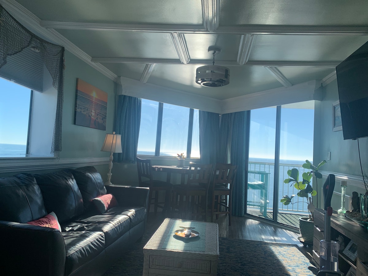 We are excited to say: the beaches, pools, and restaurants are now open! This condo is professionally cleaned!! Key Features of this condo include: * Oceanfront One Bedroom at Sandy Beach Resort * 1 King Bed, with Sofa Bed, Sleeps up to 4, sheets provided * Private Bathroom * Fully Equipped Kitchen, with Kitchen Table * High-speed FREE Wi-Fi * FREE Parking * Indoor and Outdoor Pools, Lazy Rivers and Hot Tubs * Short walk to 2nd Avenue Pier and Family Kingdom Amusement Park