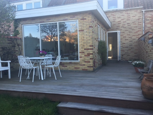 Town house on more than 200 m2, including a usable basement. 3 bedrooms and a lovely open-plan kitchen and living-room. Large balcony towards the garden with sun in the after noon and evening. Charming garden, including small football goals and a trampoline. The house is situated in the middle of Skanderborg town close to lake, shopping facilities and train/bus station (only 15 minutes ride to Aarhus Central Station).