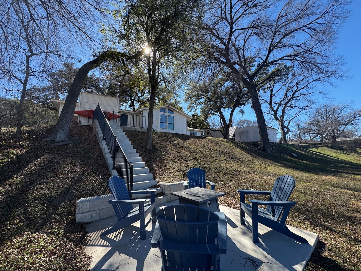 Welcome to Our Hidden Lakeside Gem! Escape to this beautiful lake house with breathtaking 180° views of the lake and surrounding nature. Watch deer stroll by, ducks and geese land on the lake shore, and enjoy stunning sunrises and sunsets. Perfect for swimming, kayaking, paddle boarding, and fishing, the calm, quiet waters of Lake Marble Falls make this a peaceful getaway—no noisy speedboats here! Perfect for a work-from-home escape—enjoy high-speed Wi-Fi while working from the lakeside.
