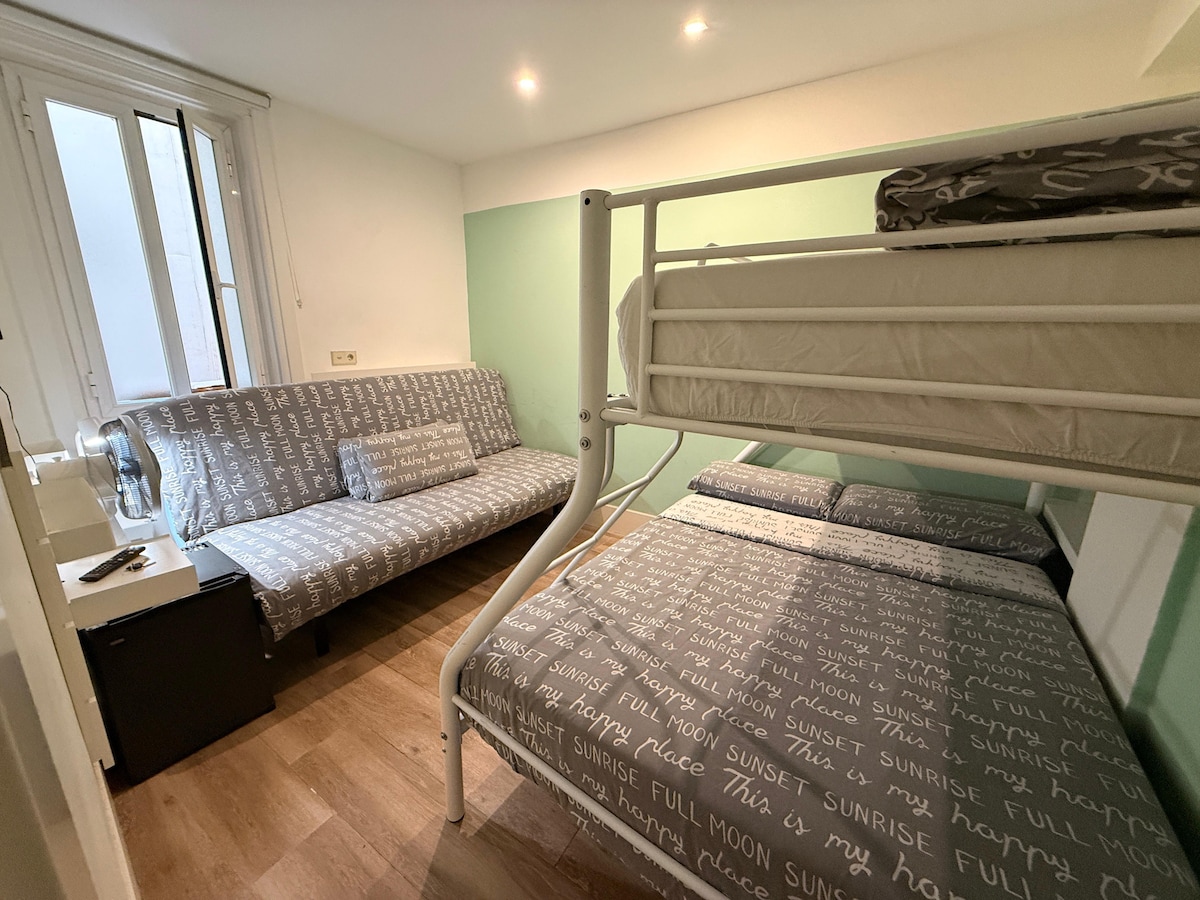 Modern, bright loft apartment on the fourth floor with elevator access, sleeps 4. It features a double bed, a single sofa bed, and a fold-down bed, a fully equipped kitchen, and ducted heating and air conditioning. Amenities include Wi-Fi, a smart TV, a washing machine, a clothesline on the terrace, parking in the building, and access to a summer pool. Electronic and manual entry are available. Swimming pool open from 14 June to 1 September.