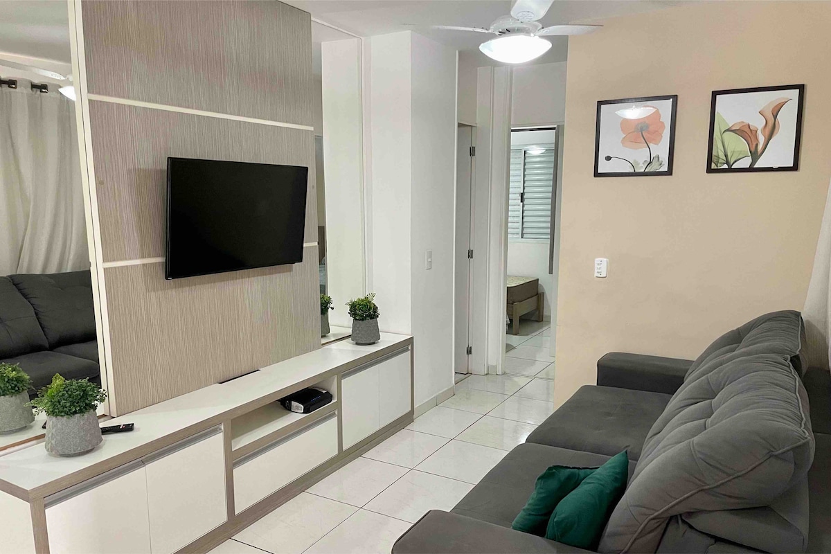 Apartamento totalmente mobiliado com 2 quartos, no Condomínio Avalon Hortolândia. Condomínio muito seguro. Até 5 pessoas. Excelente localização no centro de Hortolândia, próximo a IBM, EMS, Honda, Magneti Marelli, Havan e Prefeitura de Hortolândia. Próximo à supermercados, shopping e lojas. Tem piscina, parquinho, academia e 1 vaga de estacionamento. Internet WI-FI de 200MB *Não alugamos por fora do aplicativo.