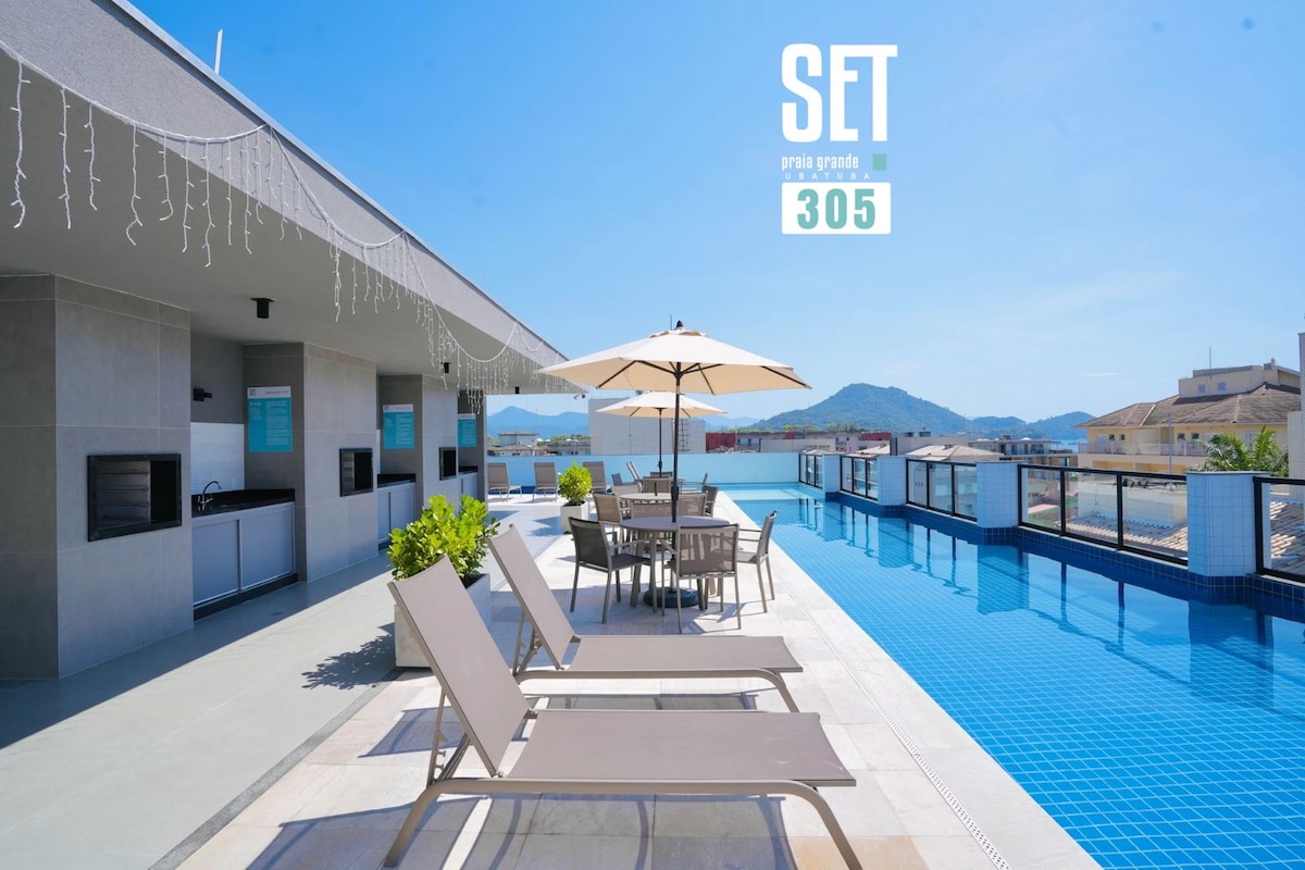 Praia Grande 公寓,靠近海滩,配备游泳池、空调、Wi-Fi 和健身房