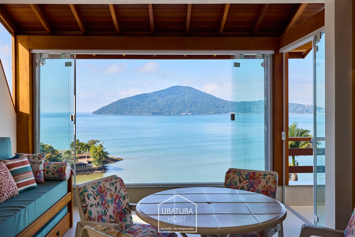 Apartamento novo/reformado, com vista incrível para o mar na melhor localização de Ubatuba. Perto de tudo e ao mesmo tempo em meio a natureza. 1 quarto com cama de casal e vista para o mar Sala integrada com a cozinha Piscina no condomínio. Ar condicionado Wi-fi rápido de 200mb Vaga de garagem Portaria 24h Fica na Prainha do Matarazzo e a 5 minutos da Praia do Perequê-Açu. Moderno e com uma vista paradisíaca. Por estarmos próximos ao Café de La Musique, pode ter barulho nos finais de semana.