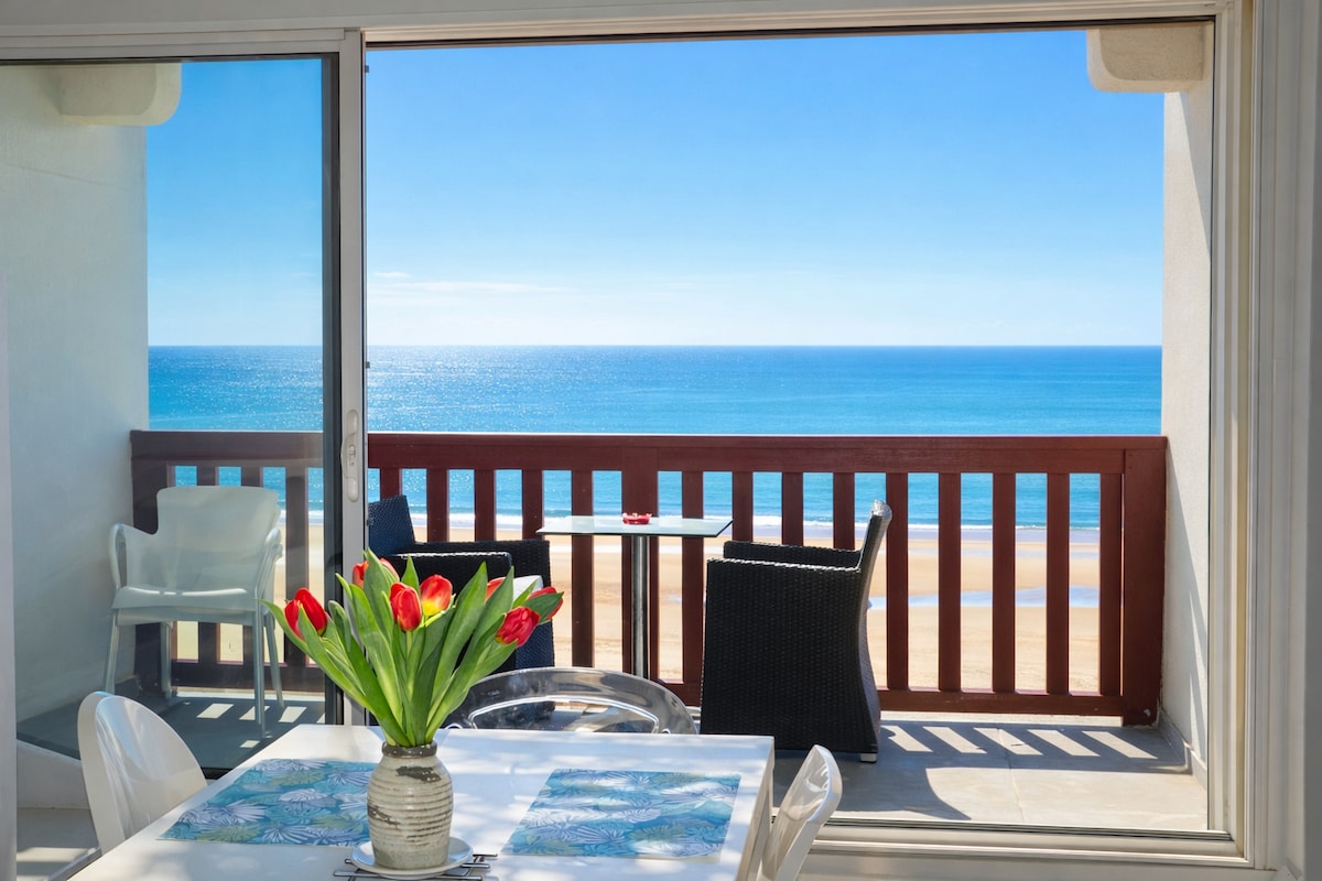 Logement face à l’océan très bien équipé, décoré et refait à neuf. Situé à 25 mètres de l'entrée de plage de "Notre Dame" à Capbreton et à 50 mètres de l'entrée de plage de "La Sud" à Hossegor Confortable pour 6 adultes, 2 enfants et 2 bébés Cet appartement duplex est accessible en rez de chaussée (aucun logement au-dessus) Couché de soleil et parfois dauphins visibles du séjour Restaurants de plage, traditionnels, gastronomique, location vélos, école de surf, commerces pour courses à proximité